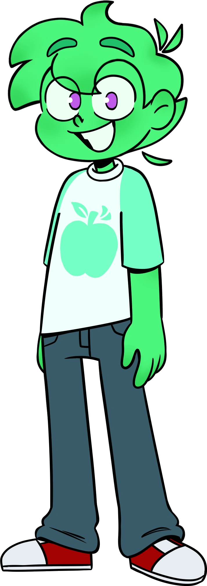 O segundo visual desenhado pela Blazezita, ele ficou com um tamanho de cabeça mais realista, ele não tinha olhos grandes e tinha pupilas roxas, não tinha um nariz grande, e agora tem sombras na cabeça, no cabelo, no pescoço e no braço. Ele tinha uma gola verde redonda, seus braços estavam bem finos e o símbolo da maçã verde na sua camisa mudou.